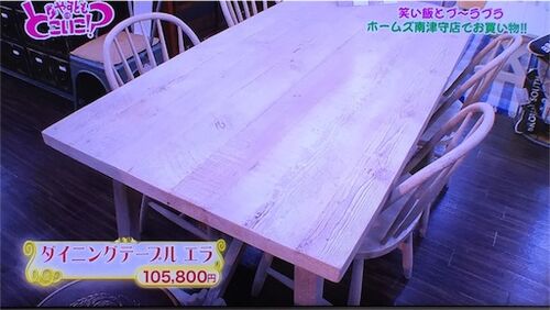 さて今回のお連れさんである笑い飯のおふたりと、ホームズ南津守店をぶ〜らぶら。 1店舗目 ホームズ南津守店(2階) ともこさん「これかわいいな」 【ダイニングテーブル エラ ¥105,800】 こたつ布団が気になる西田さん。 「これええやん」 ともこさん「(…